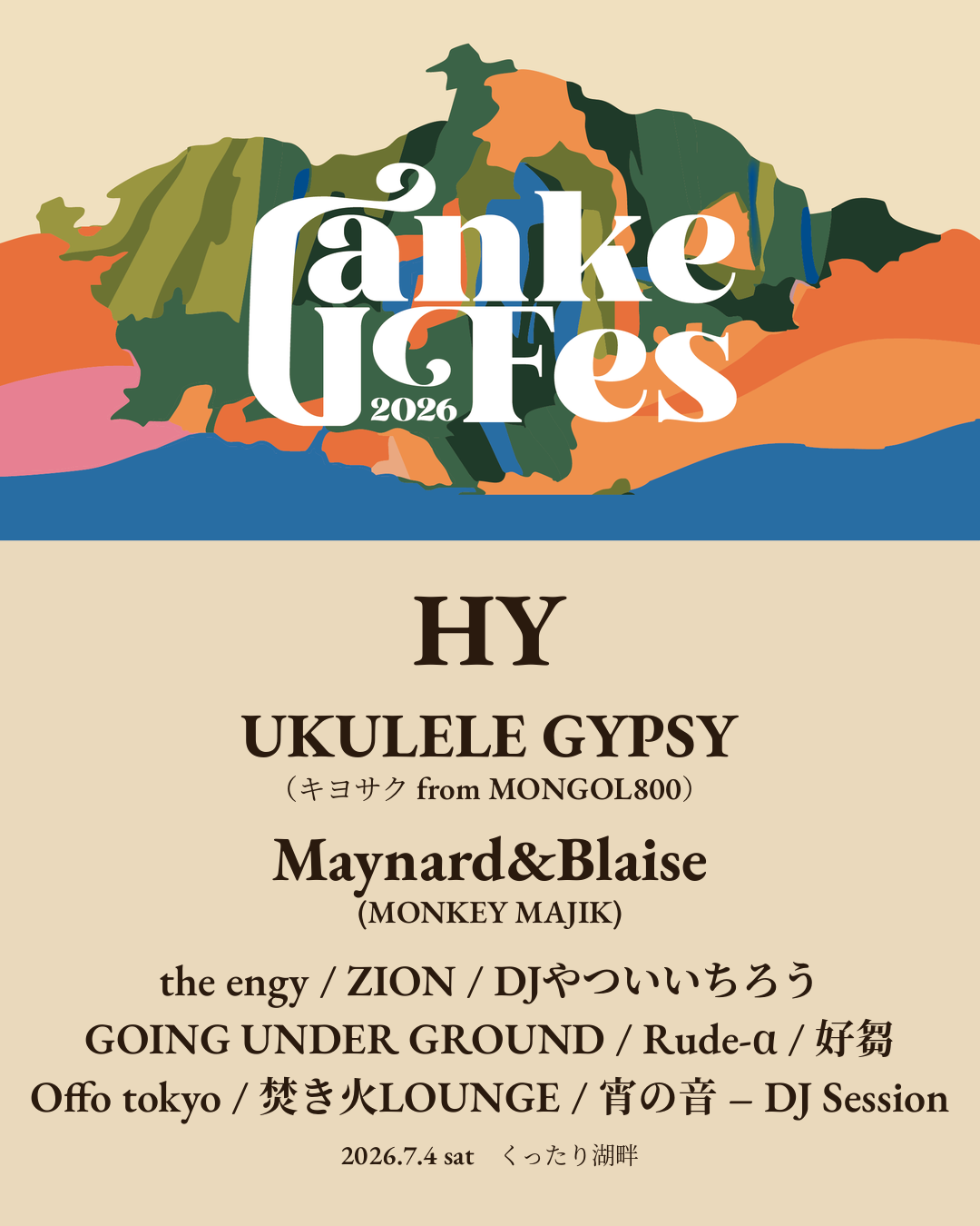 出演:HY / UKULELE GYPSY(キヨサク from MONGOL800)Maynard&Blaise(MONKEY MAJIK) / the engy / ZION / DJやついいちろう / GOING UNDER GROUND / Rude-α / 好芻 / Offo tokyo / 焚火LOUNGE / 宵の音– DJ Session